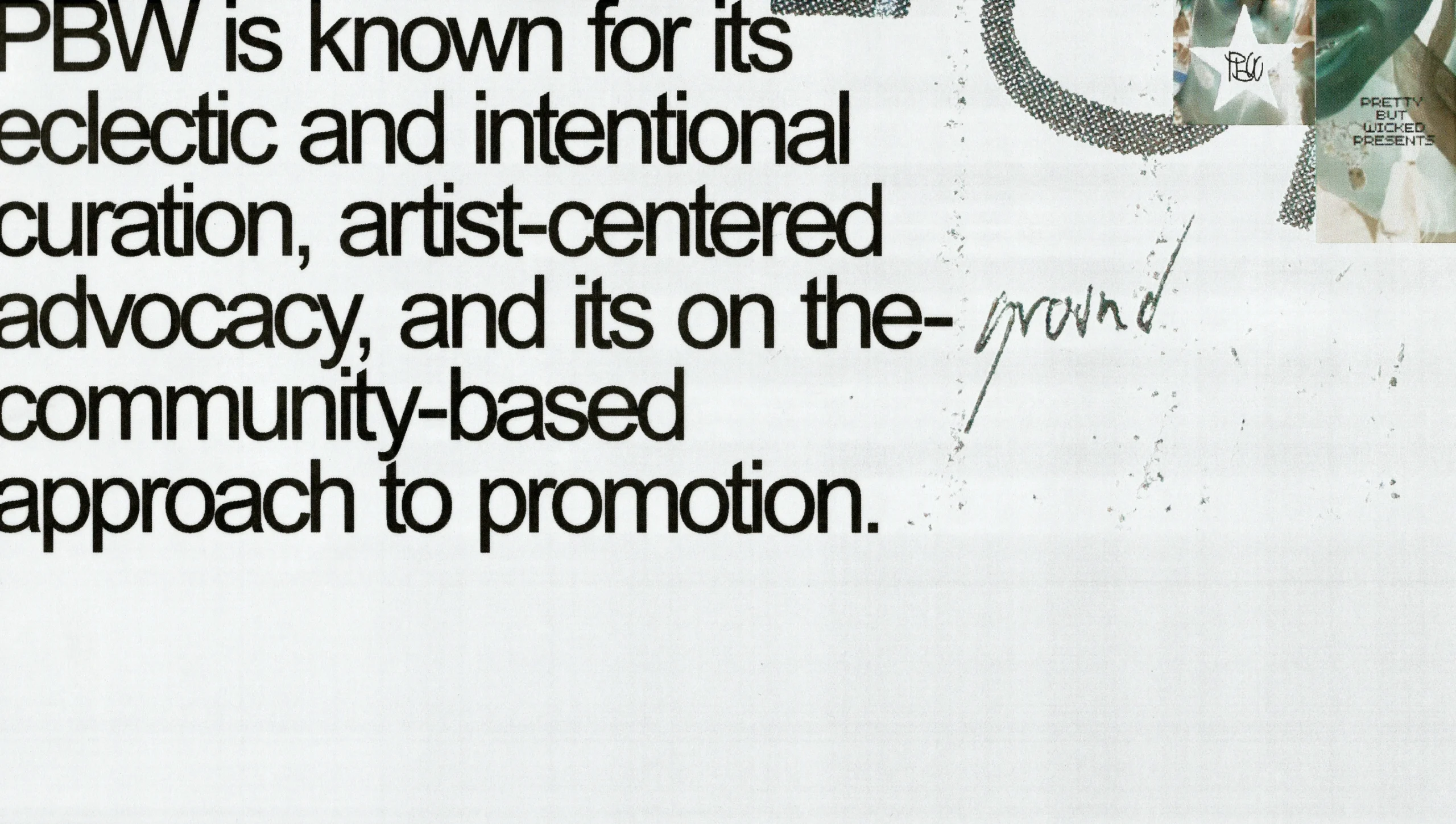 "Pretty But Wicked" is the moniker of LA-based Sammie Pearson, an independent concert promoter, music marketer, and tastemaker. PBW provides curatorial and creative direction, marketing consultations, event production, and artist liaison support to shows across major venues in Califomia. Working on both local concerts and national and international tours, Pretty but Wicked has produced and partnered on over 200 shows.